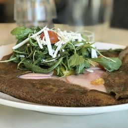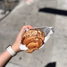 Saturday morning Commissary kitchen so you can watch bakers at work Service was ultra quick and friendly Excellent coffee (black), smooth and balanced Complimentary self-serve water Pastries were delicious, layers were on point Small tables and chairs for dine-in with french bg music Highly recommend the french ham and cheese croissant (has a smear of dijon mustard inside). It tasted damn good at room temp so it would've been a perfect 10 if it was warmed up. I can see how they received 2023 People's Choice for Best Croissant in SF.